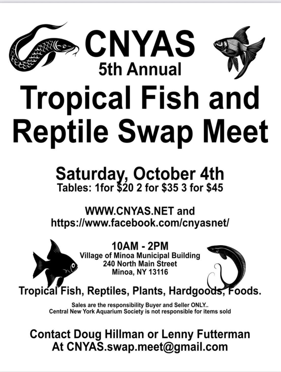 CNYAS 5th Annual Tropical Fish & Reptile Swap Meet - 10/4/2025